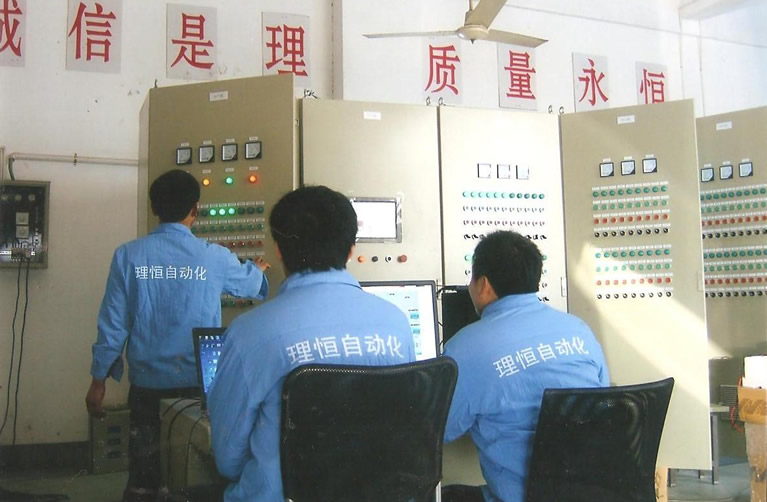 為進(jìn)一步滿足用戶的需求,保證每臺(tái)PLC柜的規(guī)范運(yùn)行,我公司責(zé)任落實(shí)到個(gè)人。圖為車間工程技術(shù)人員在產(chǎn)品出廠前對每臺(tái)柜子進(jìn)行程序調(diào)試和畫面設(shè)計(jì)。