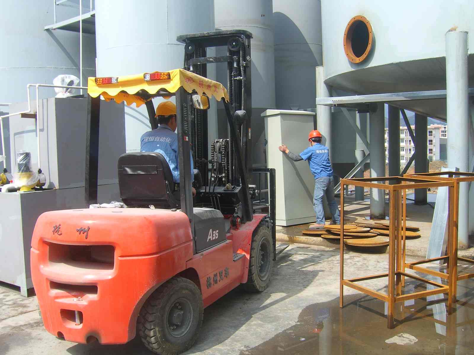 我公司施工人員用叉車將控制柜就位