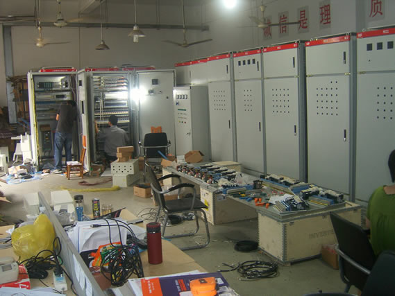 下圖為公司員工正在加緊生產(chǎn)為該項(xiàng)目配套的電控柜。