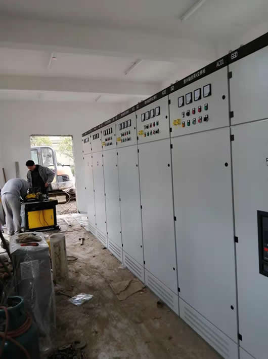中興能源裝備公司內(nèi),我司制作安裝的電控柜一字排開,我司員工正在精心安裝的身影。
