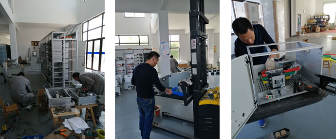 公司員工在第二生產(chǎn)車間精心安裝即將發(fā)貨的抽屜柜