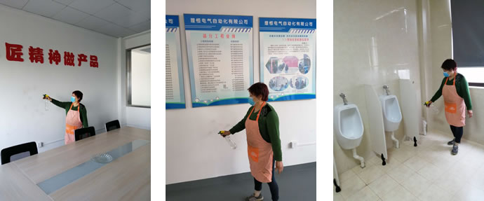 公司保潔員每天堅持對公司內(nèi)部的會議室、走廊通道及衛(wèi)生間等場所噴灑酒精消毒,確保公共環(huán)境的衛(wèi)生