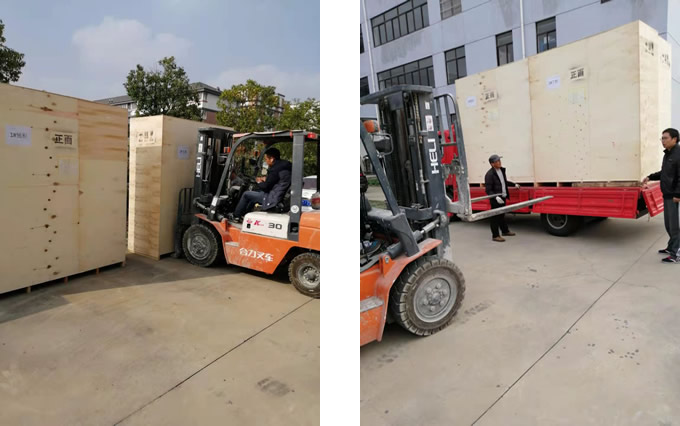 圖為正在裝車(chē)發(fā)運(yùn)至廣州大陵河的PLC雙拼柜